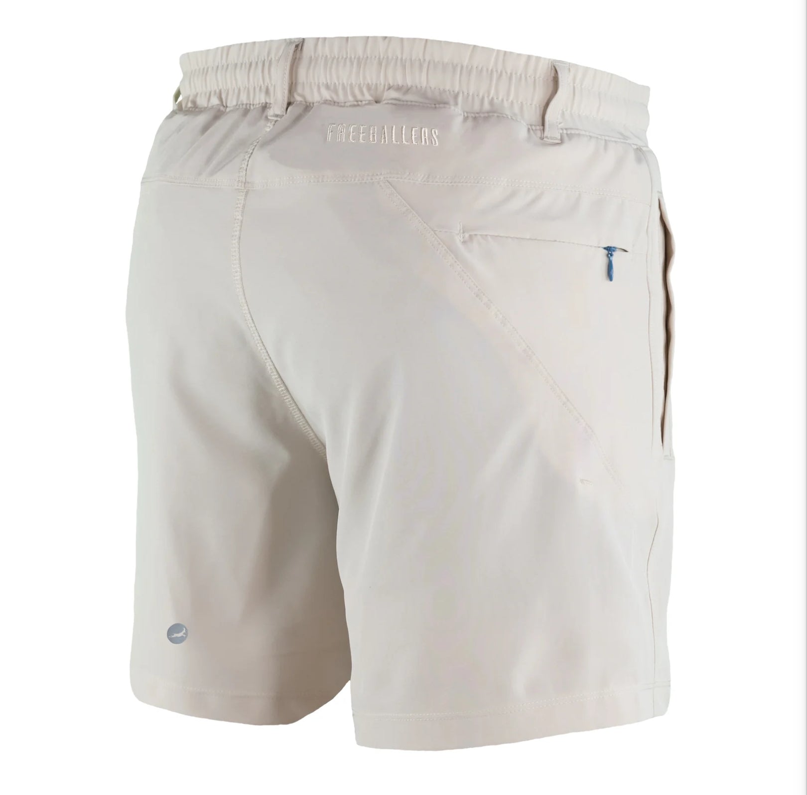 Expertly crafted for peak performance, our 6” Stone Freeballers give you the edge you need on and off the court. Made from breathable stone khaki sport shorts, experience ultimate comfort and flexibility, no matter the game. Step up your game with our Freeballers.