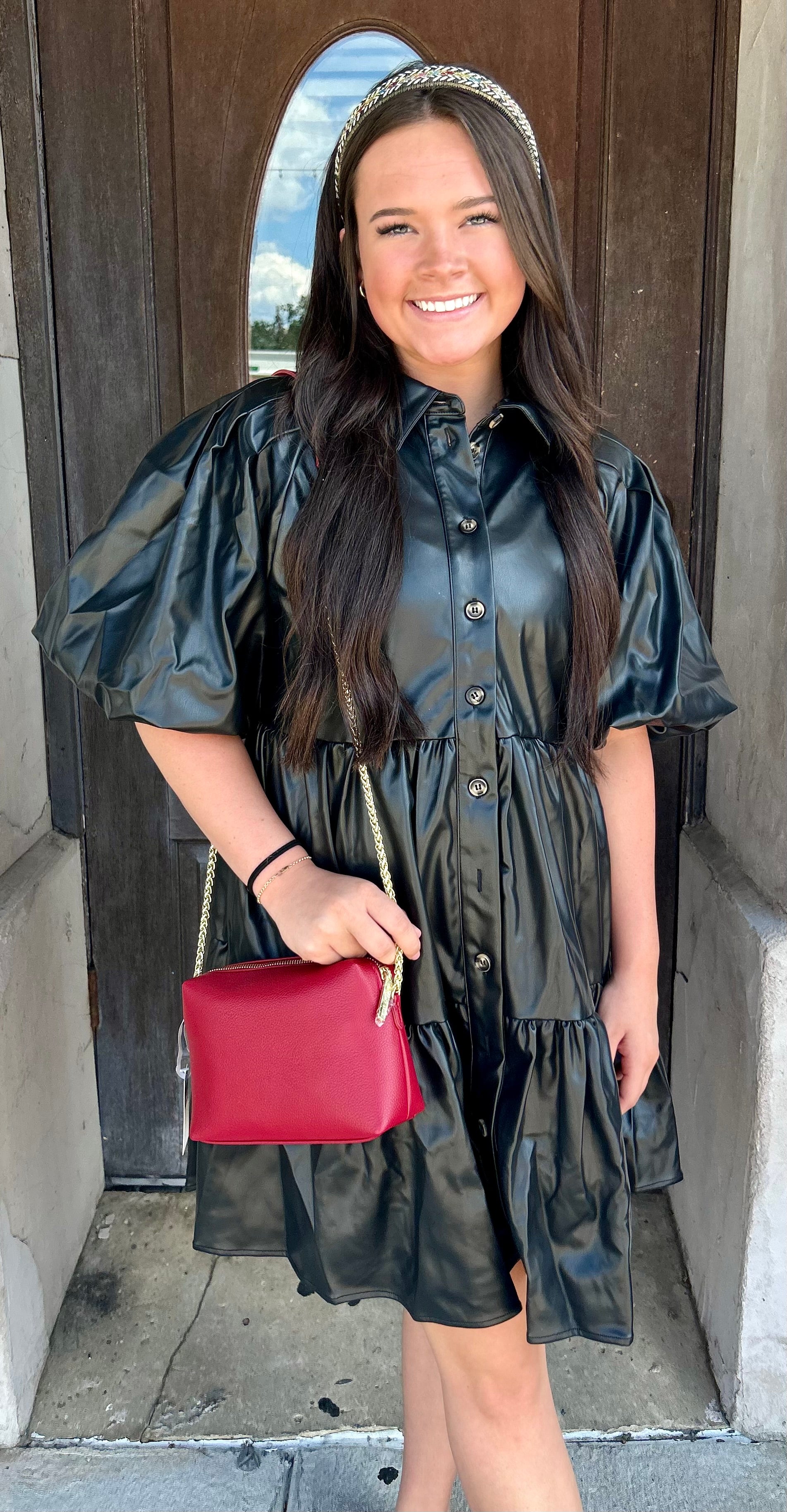 Be a boss babe with our Black Leather Dress. Featuring puff sleeves and soft leather, this dress will elevate your style while adding a touch of edginess. Perfect for a night out or a day at the office. (Boss not included)