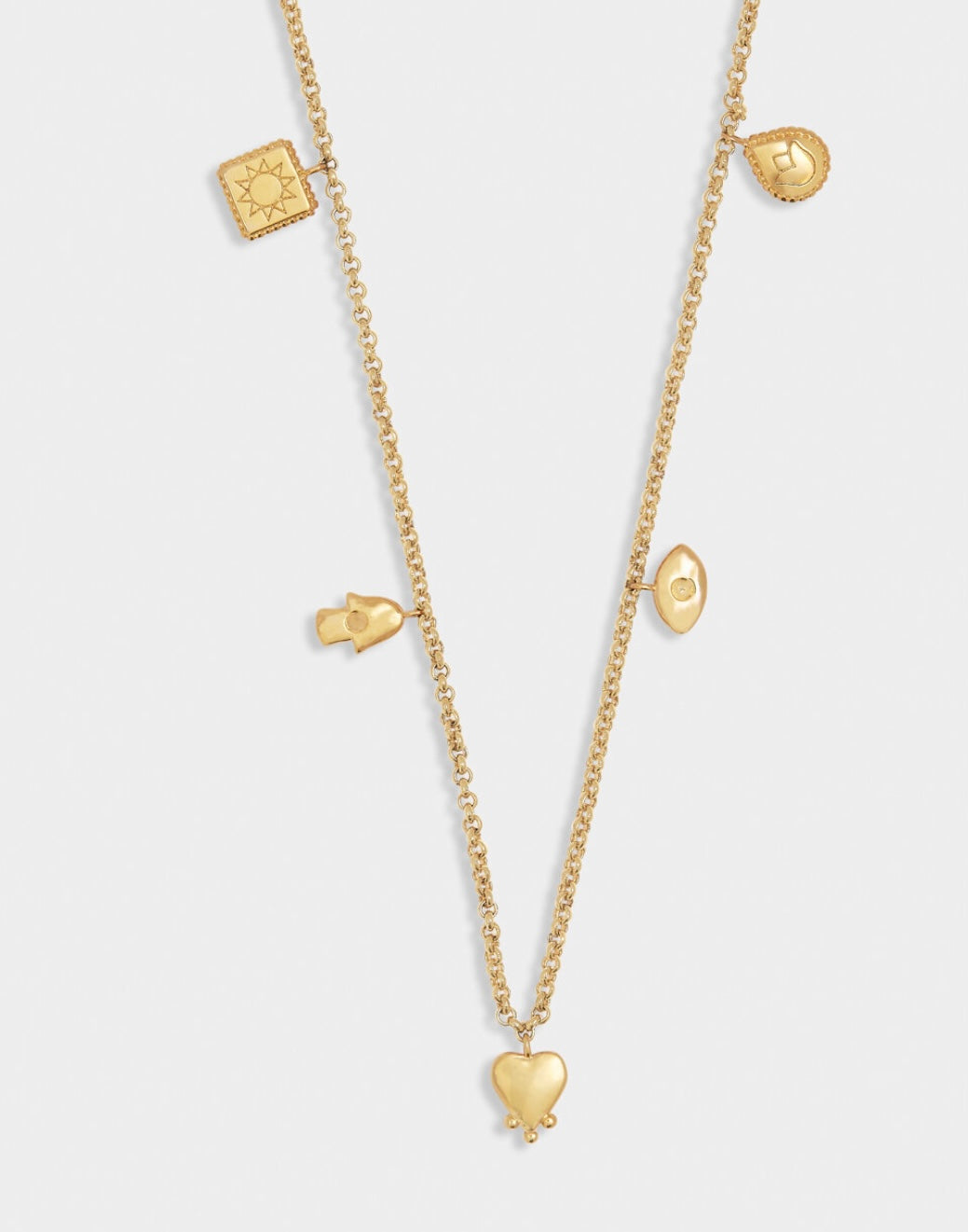 "Stay effortlessly chic with our Boheme Charm Necklace. This waterproof necklace is coated in stunning gold, making it perfect for any occasion. Stay stylish in any weather with this must-have accessory. (No need to worry about rain ruining this beauty!)"