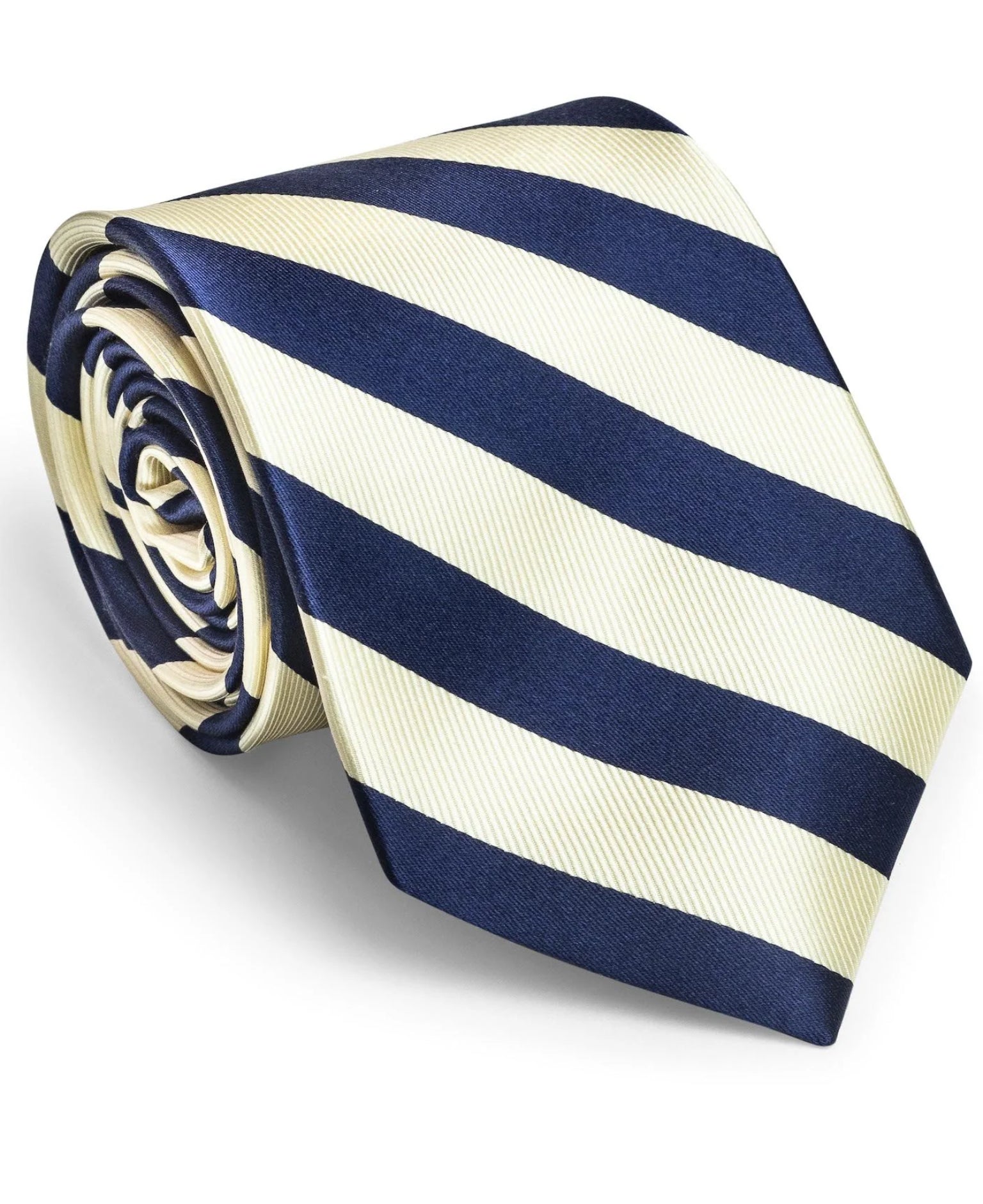 Calling something 'classic' is overused these days; we're the first to admit it. But a blue and white contrast repp stripe with 100% woven silk? Textbook for versatility and utterly timeless.