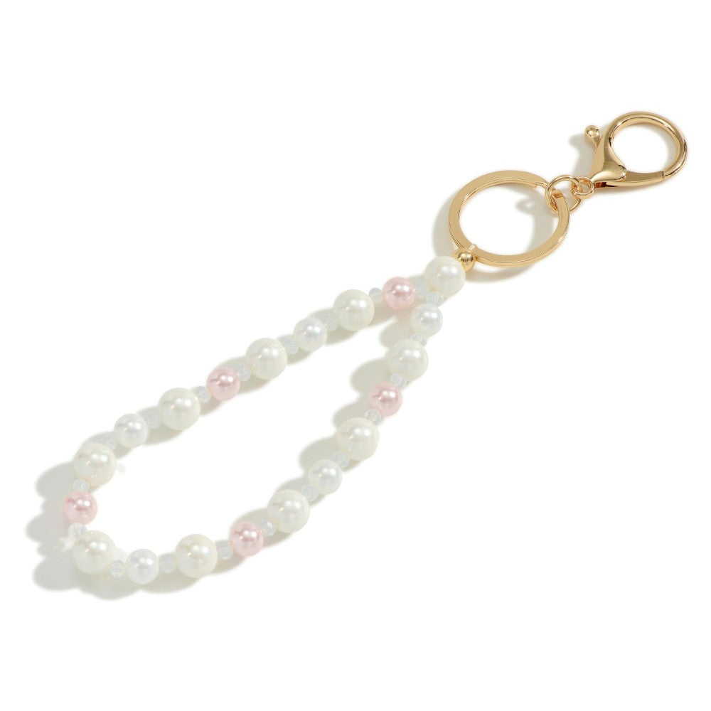 Chunky Glass and Pearl Beaded Keychain