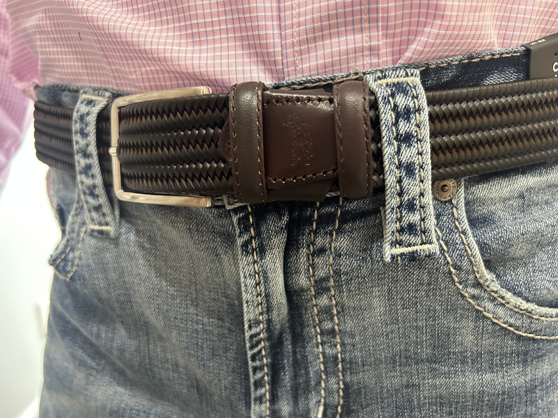 Stretchy Discover the versatility and style of our Coffee Belt. Made with stretchy woven material, this southern Casanova belt offers both comfort and fashion. Perfect for any occasion, add this belt to your wardrobe for a touch of sophistication.
