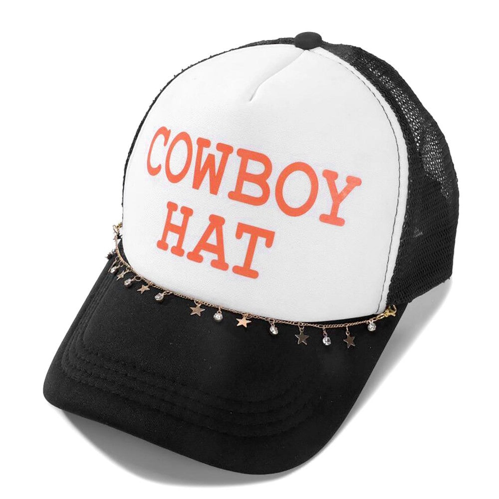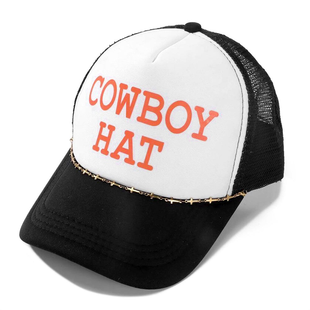 This ball cap with chain adds a rugged twist to any cowboy's outfit. Made with durable materials, it offers both style and functionality. The chain adds a touch of urban flair, making it perfect for both city and country settings. A must-have for every modern cowboy.
