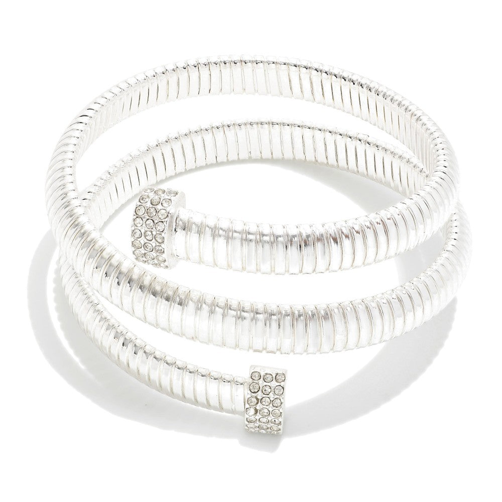 Cubic Zirconia Pave Ribbed Cuff Bracelet