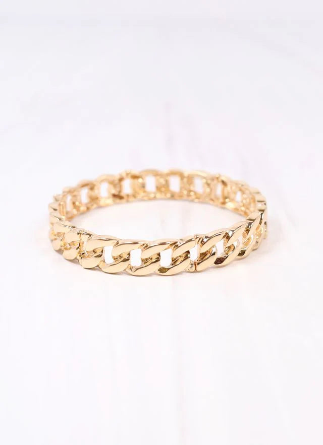 This classy link bracelet is a perfect basic to wear with any outfit. It has a shiny metal finish and stretches to fit most wrists.
