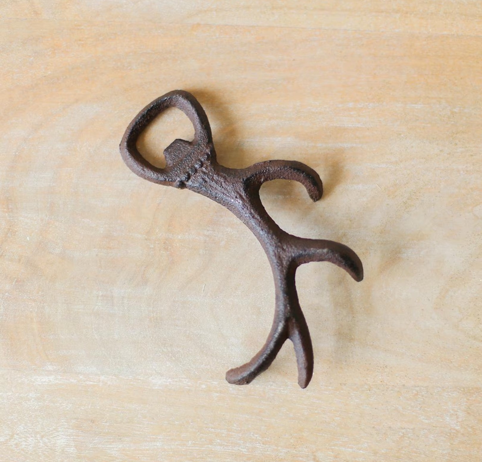 This antique brown 4x6 metal deer antler bottle opener is not only a unique and stylish addition to your collection, but it also provides a functional and efficient way to open your bottles.