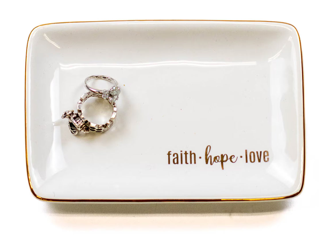 Give the gift of faith with our Faith Hope Love Trinket Dish!