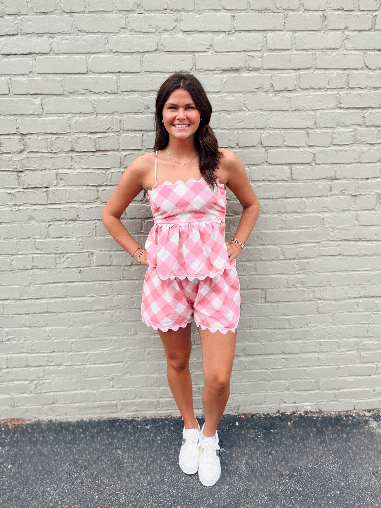 This Gingham Ric Rac Trim Short Set is a stylish and comfortable option for any summertime event. The adorable gingham pattern and Ric Rac trim add a touch of whimsy, while the lightweight fabric ensures breathability and ease of movement. Perfect for a day at the beach or a backyard barbecue.