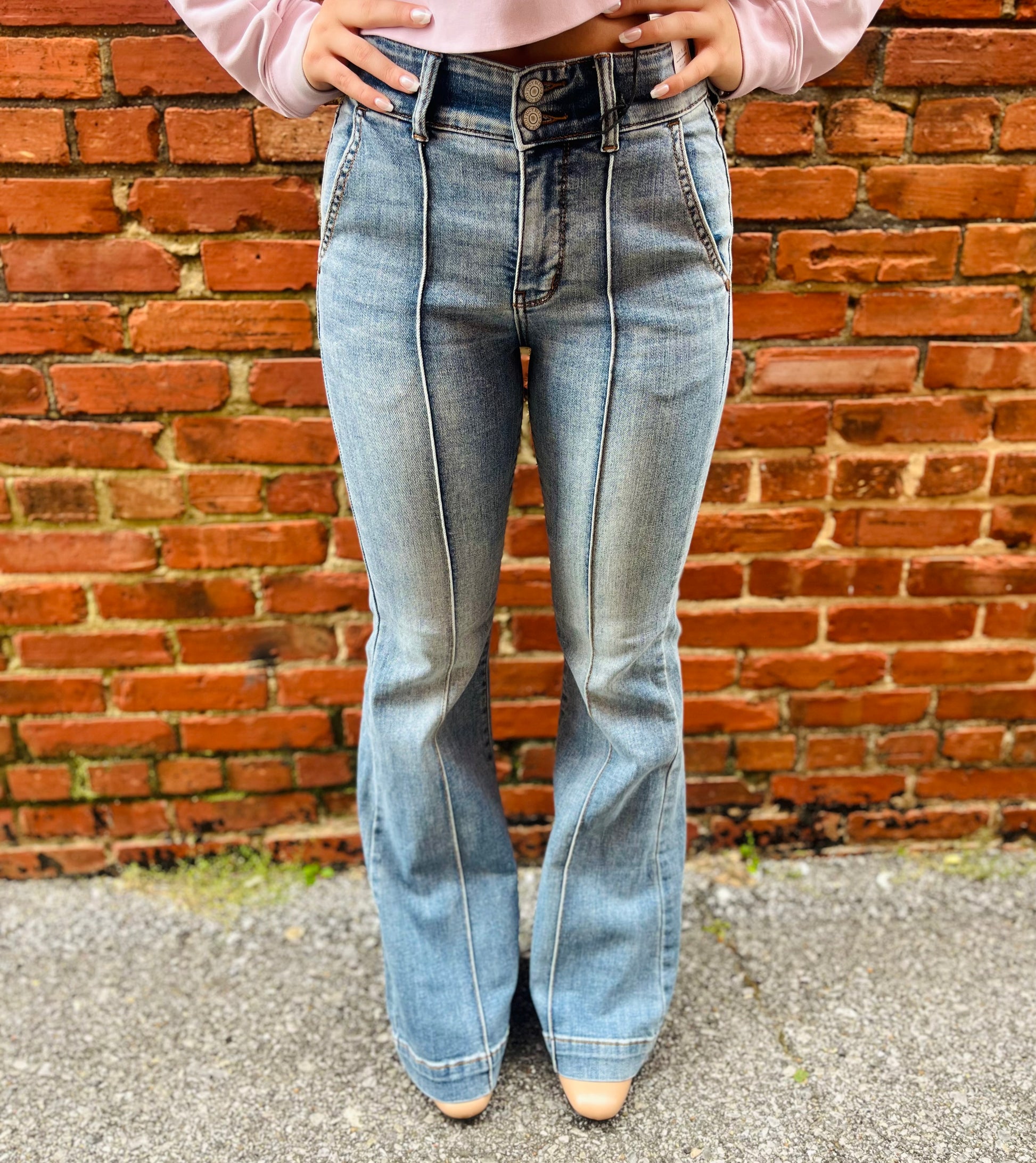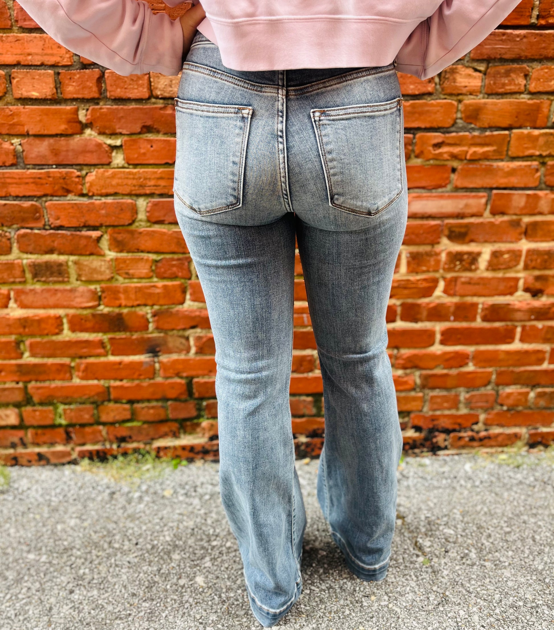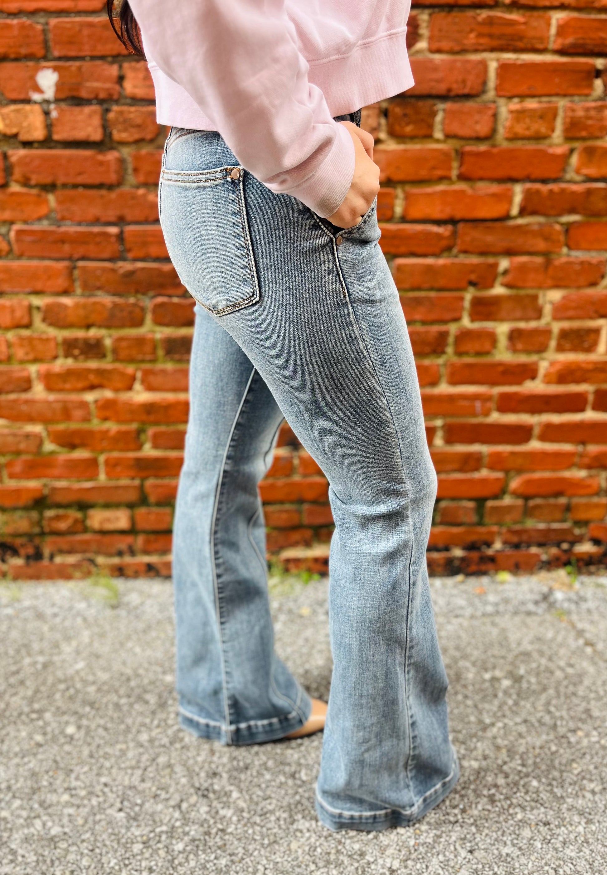 Made from high-quality denim, these high waisted Judy blue flare jeans are a stylish and flattering addition to any wardrobe. With their high waist design, they provide a slimming effect and elongate the legs for a sophisticated silhouette. Perfect for any occasion, these flare jeans offer both comfort and style.