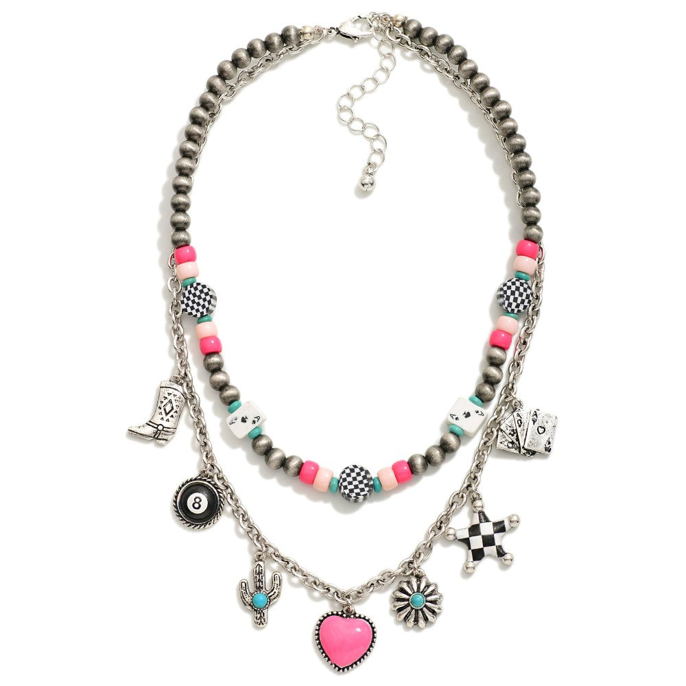 Layered Western Beaded Charm Necklace