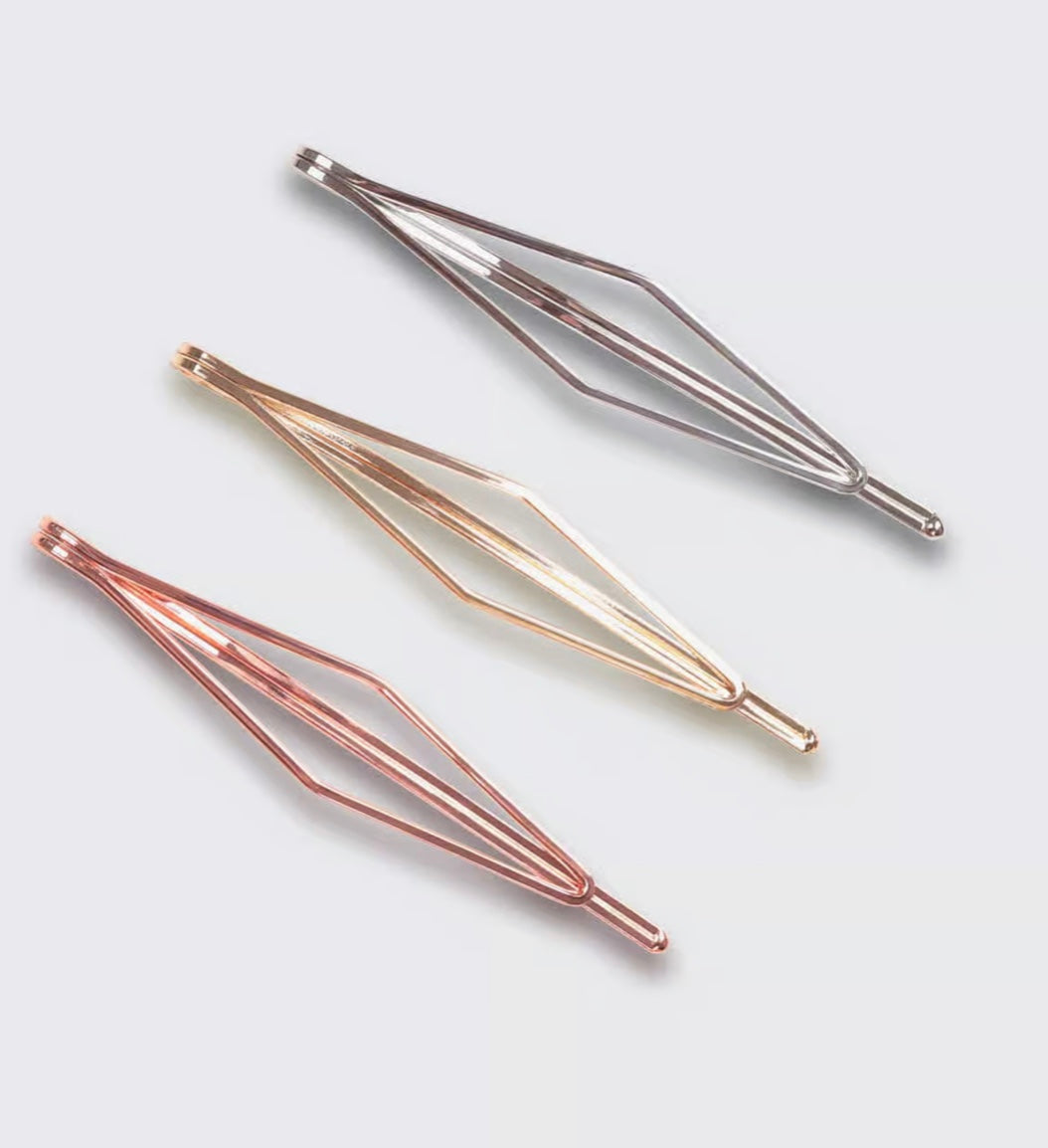 - The set includes 3 bobby pins in gold, rose gold and silver.