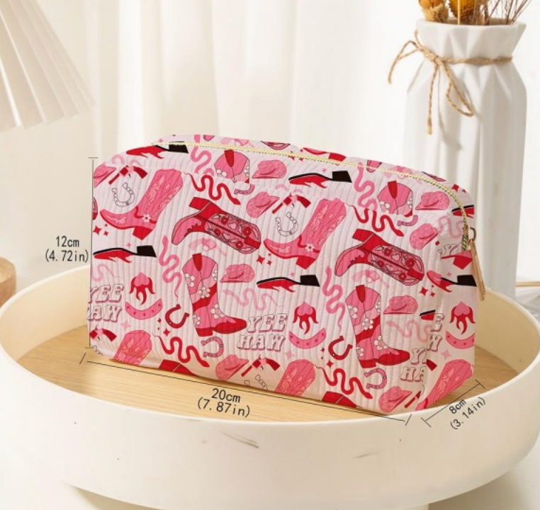 This professional cowgirl makeup bag is designed to keep all of your beauty essentials organized and accessible. With its spacious interior, durable material, and stylish design, it's perfect for both travel and daily use. Plus, the cowgirl aesthetic adds a touch of western charm to your beauty routine.