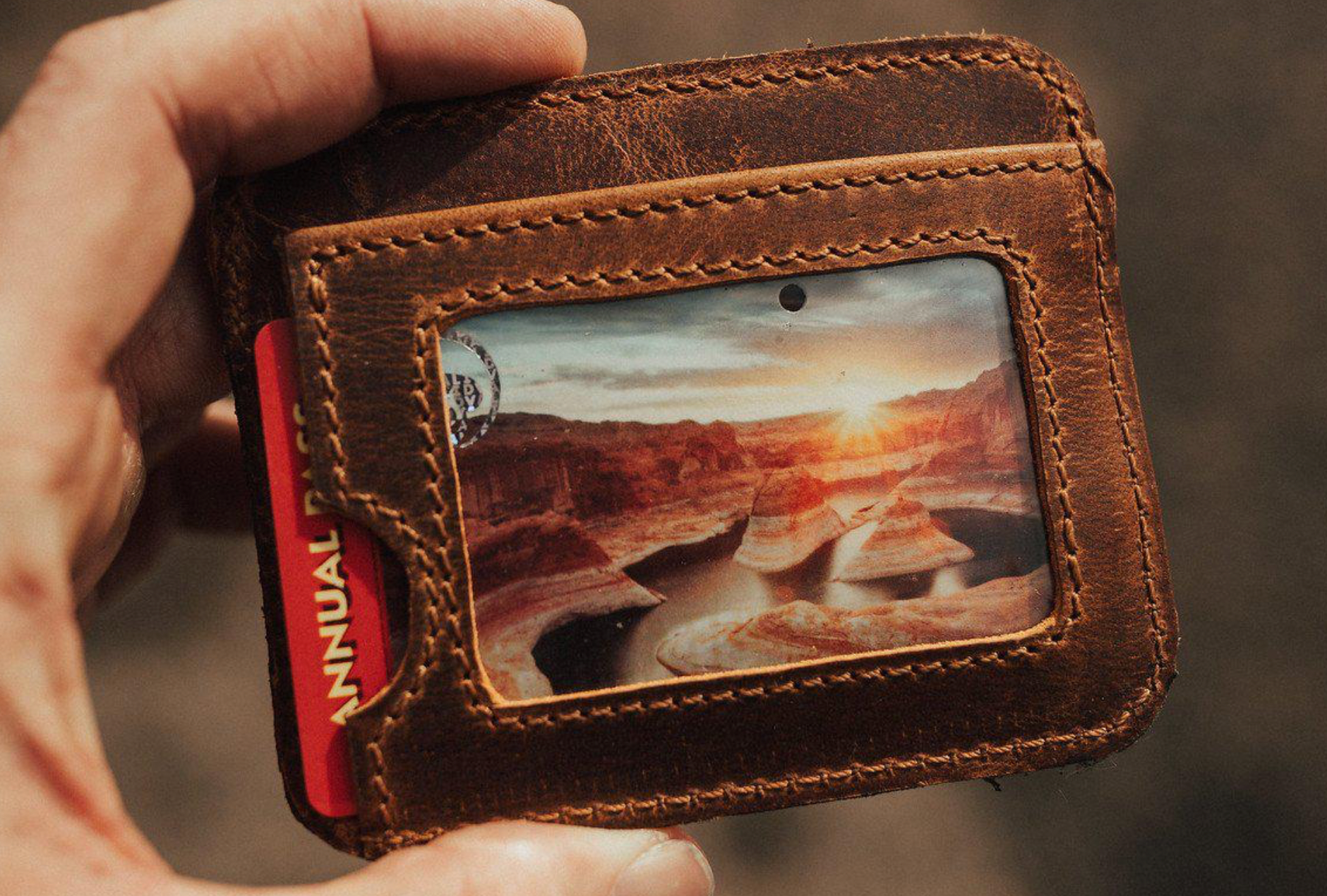 Back of wallet holds drivers license / ID
