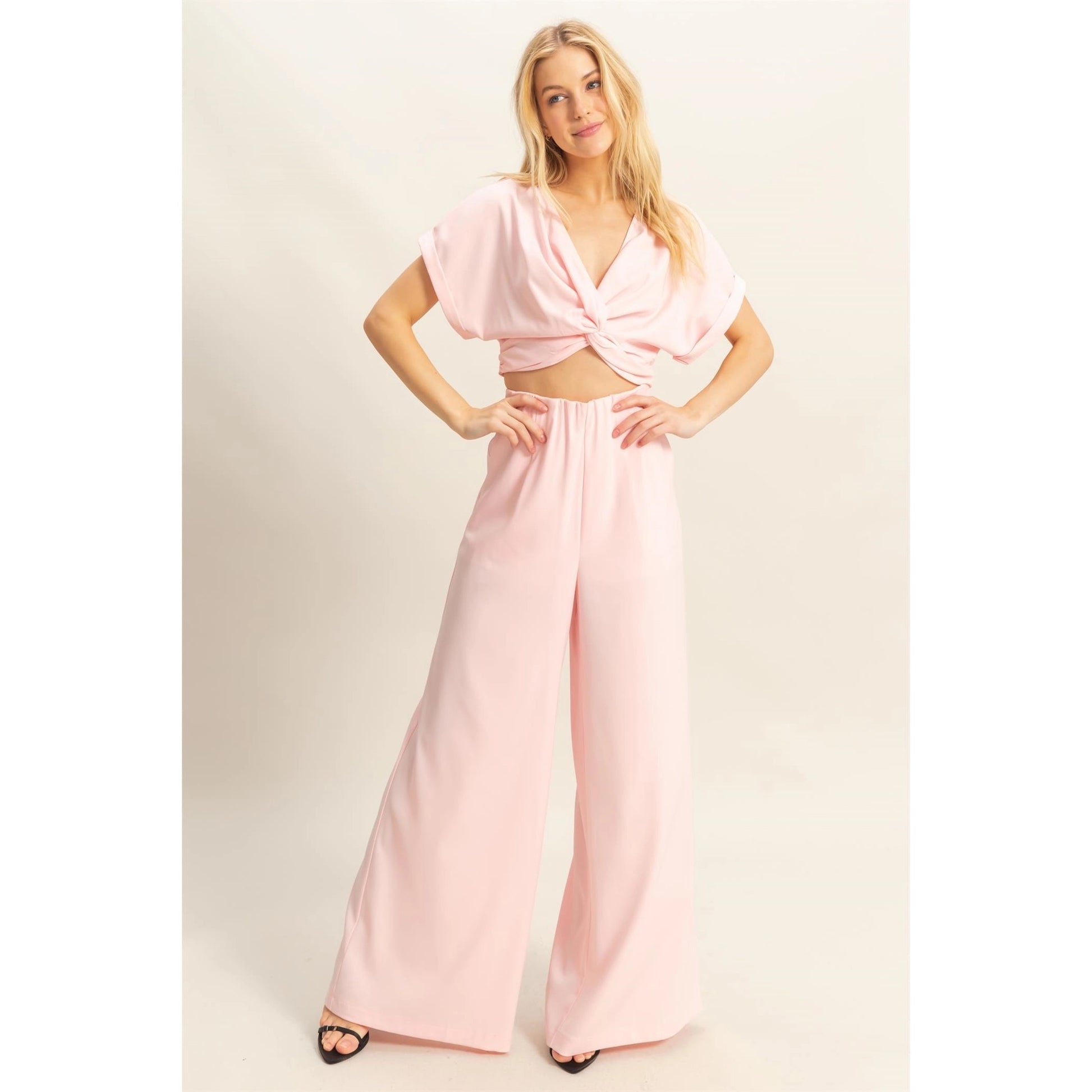 This Pink Knot Set is a stylish and versatile crop top pants set. With its knot detailing and flattering fit, it is perfect for any occasion. The comfortable and lightweight fabric makes it ideal for all-day wear. Stand out in this must-have set that seamlessly combines fashion and comfort.