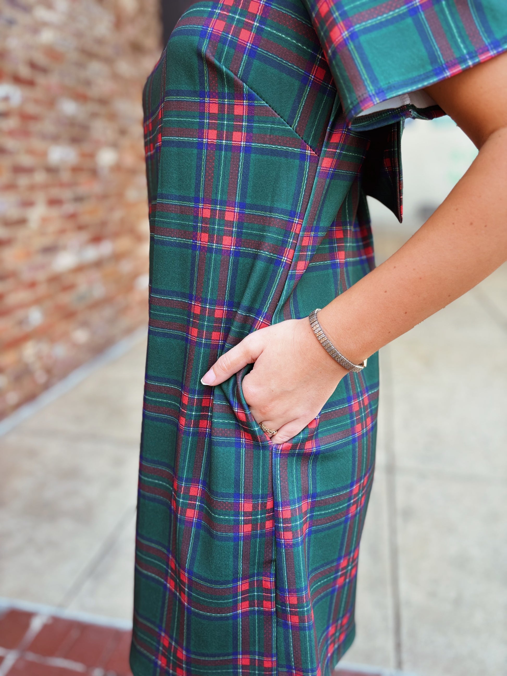 This green plaid dress is made with a stylish bow on the back, giving it a charming and sophisticated look. Perfect for any occasion, the plaid pattern adds a touch of timeless elegance while the bow adds a playful touch. Stay fashionable with this versatile and flattering dress.