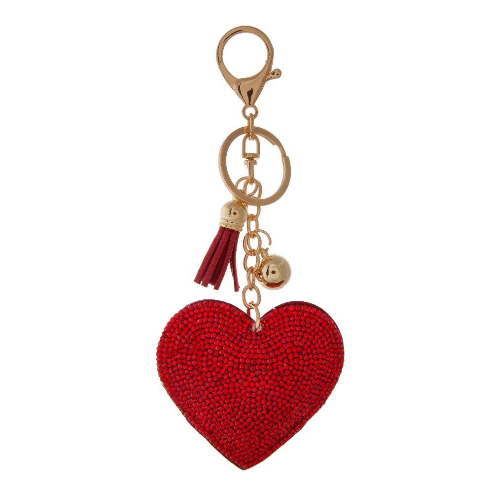 Rock your keys with this playful Rhinestone Heart Keychain! The felt heart is covered in shiny rhinestones, adding a touch of bling to your everyday essentials. And don't forget the tassel, making it easy to find your keys in your bag. Show off your fun side with this unique keychain!