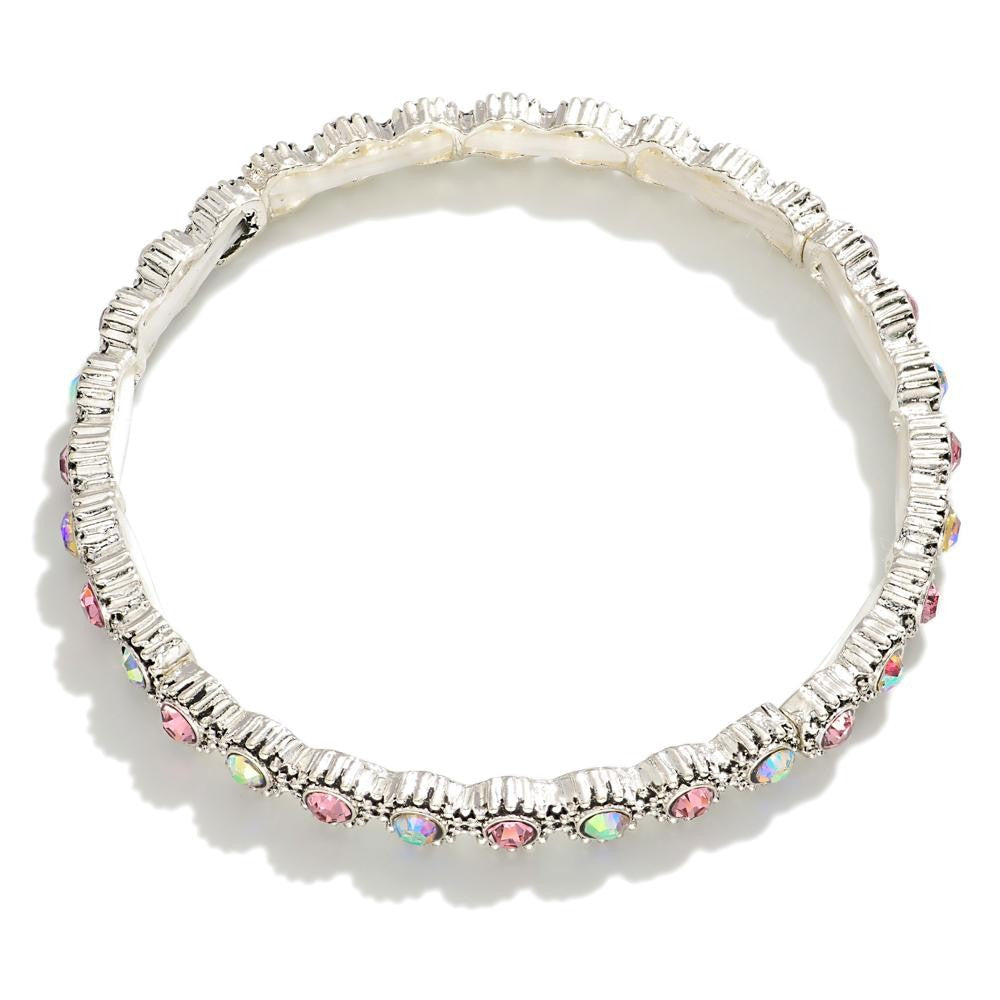 Add a touch of glamour to your outfit with our Rhinestone Studded Stretch Bracelet. Made of high-quality rhinestones, it adds a subtle sparkle to your wrist. With its stretchy design, it comfortably fits different wrist sizes. Choose from pink or blue for a versatile accessory.