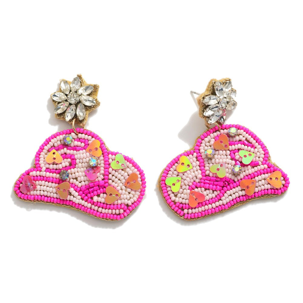 Seed Bead and Rhinestone Cowboy Hat Drop Earrings