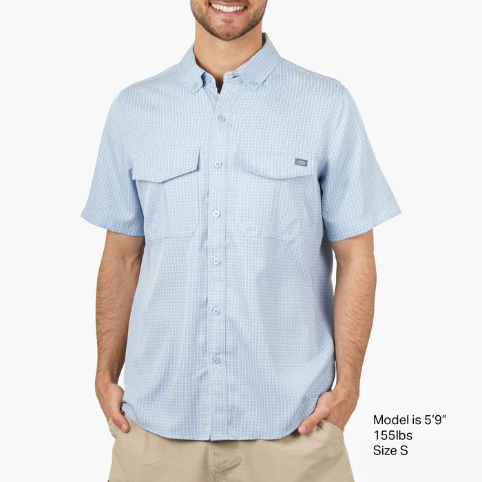 AFTCO designed this vented fishing shirt for anglers serious about their craft. The Sirius Tech short sleeve has 100% recycled polyester, perfect for the outdoors. It’s moisture-wicking, has UPF 50 sun protection, and is durable to last wash after wash. It has a hidden lens cleaner at the hem to quickly wipe off your sunglasses and double back vents for airflow.