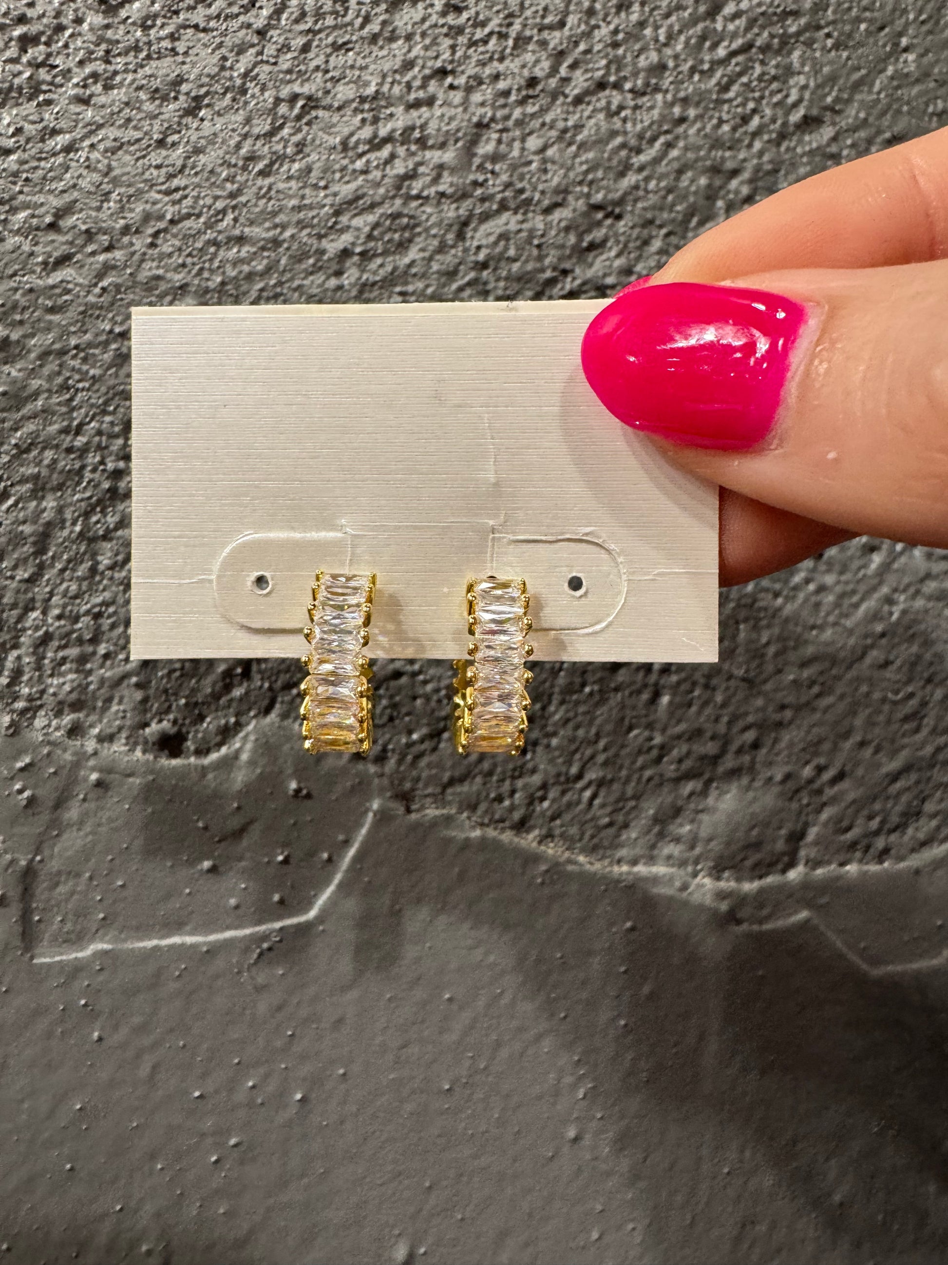 Introducing our Stone Hoops, a must-have accessory for any fashion-forward individual. Made with high-quality gold, these hoops are sure to elevate any outfit. With a unique stone design, they add a touch of sophistication and versatility. Perfect for any occasion, these hoops are a timeless addition to your jewelry collection.Â