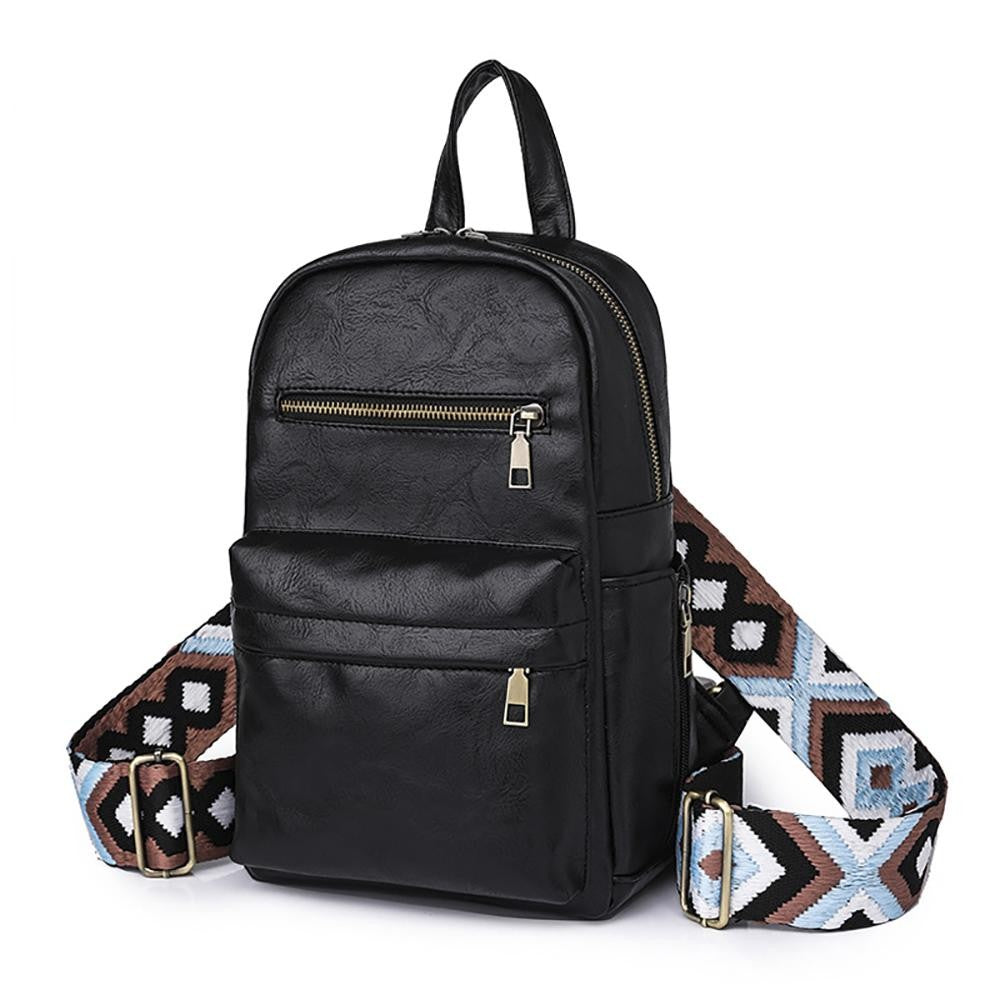 Vegan Leather Back Pack Purse With Geometric Multi Colored Straps