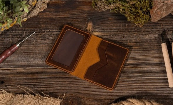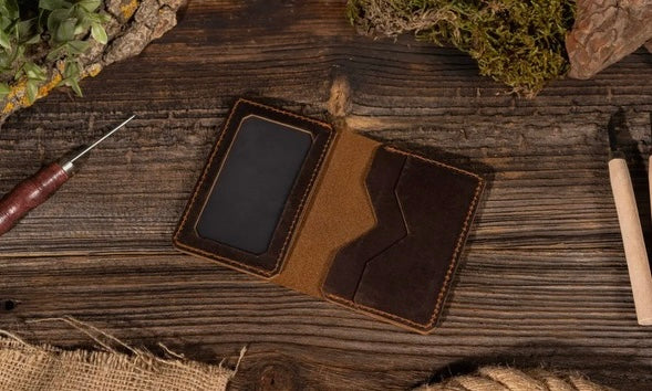 This genuine leather wallet comes in both brown and dark brown and features a convenient ID window. Keep your essentials organized and easily accessible while showcasing timeless style.