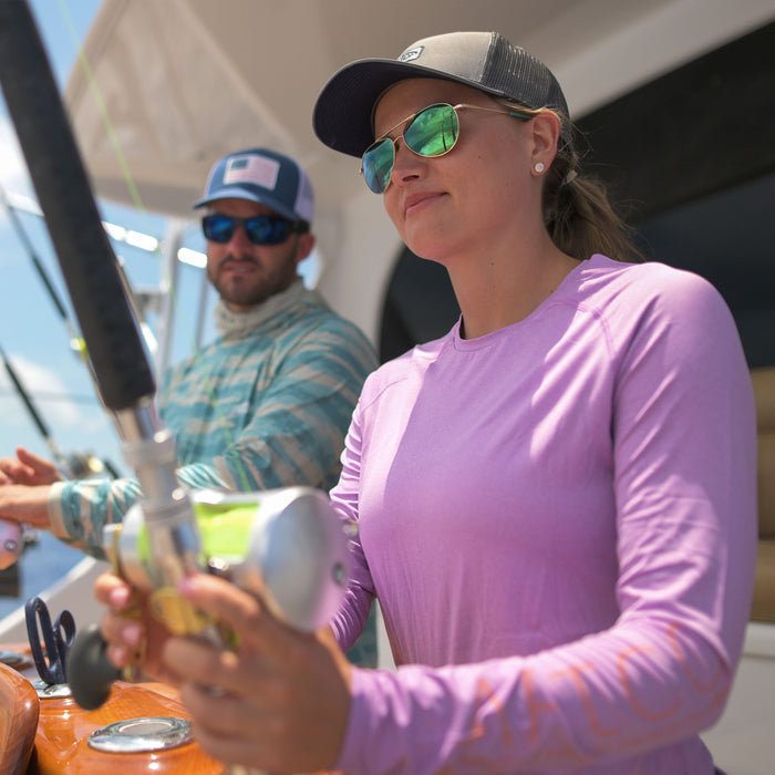 Women's Samurai Performance Long Sleeve Sun Protection Shirt were created with 92% polyester, 8% elastane. Great to wear on the water in a sunny area as these women's UV fishing shirts were made with UPF 40 sun protection. Made with the lady angler in mind, the Women's Samurai UV sun shirt for fishing includes quick dry moisture wicking material. Fish on the flats or deep water and don't worry about that lingering smell as the Samurai shirt have been treated with antimicrobial stain release.