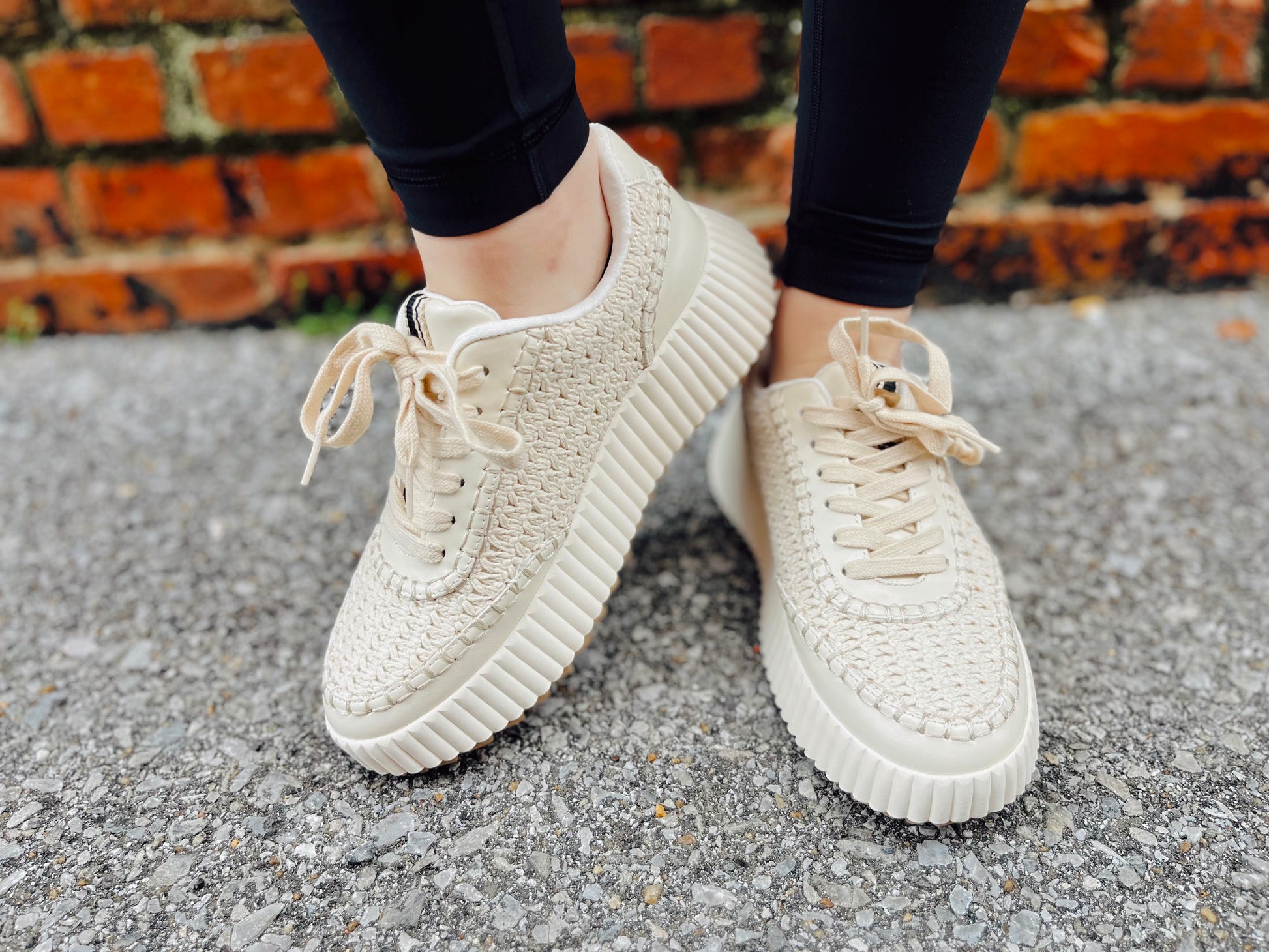 These neutral woven tennis shoes offer a lightweight and breathable design suitable for all-day wear. With their versatile style and comfortable fit, they are perfect for any active individual looking for a durable and high-performance shoe. Embrace comfort and style with these woven tennis shoes.